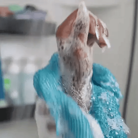 Dank des robusten Materials ist es extrem langlebig und reißfest. Bei täglicher Nutzung empfehlen wir aus hygienischen Gründen, es nach etwa 6 Monaten auszutauschen – deutlich länger als herkömmliche Schwämme.